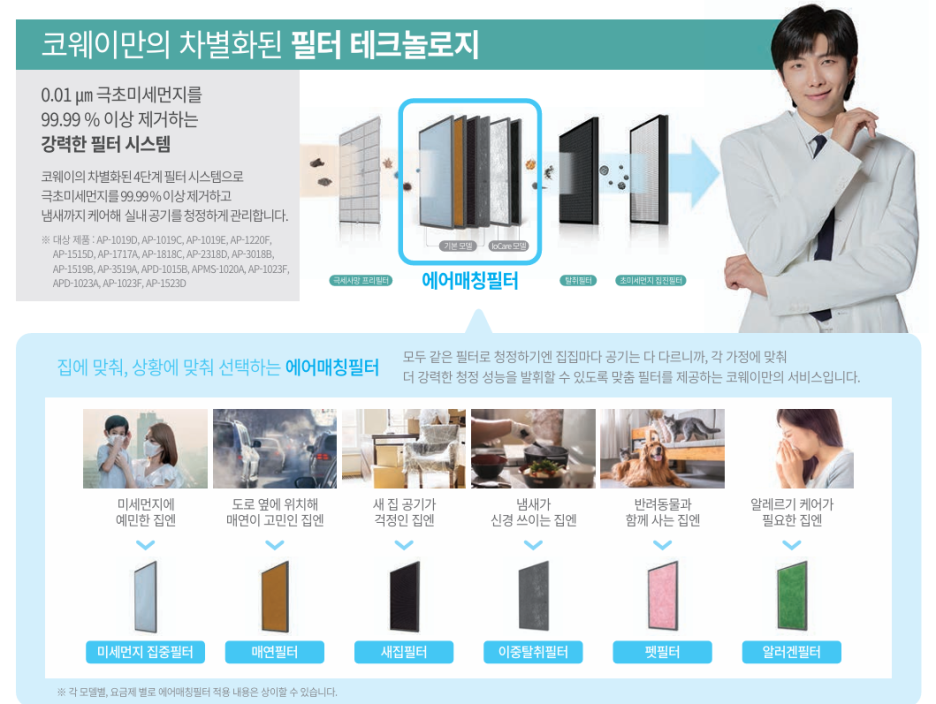 코웨이 초미세집진필터, 1년마다 교체